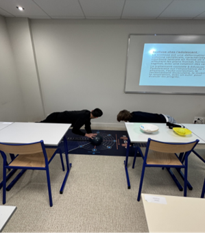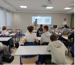 En EPPCS, le 3 mars 2026, les 1G2 ont pu assister à l’intervention kiné de Mme Julia. Elle a présenté les différentes pathologies auxquelles elle a été confrontée et parler de son métier. Des élèves ont pu réaliser des exercices de kiné (des élastiques, médecine Ball…) et ont posé des questions.