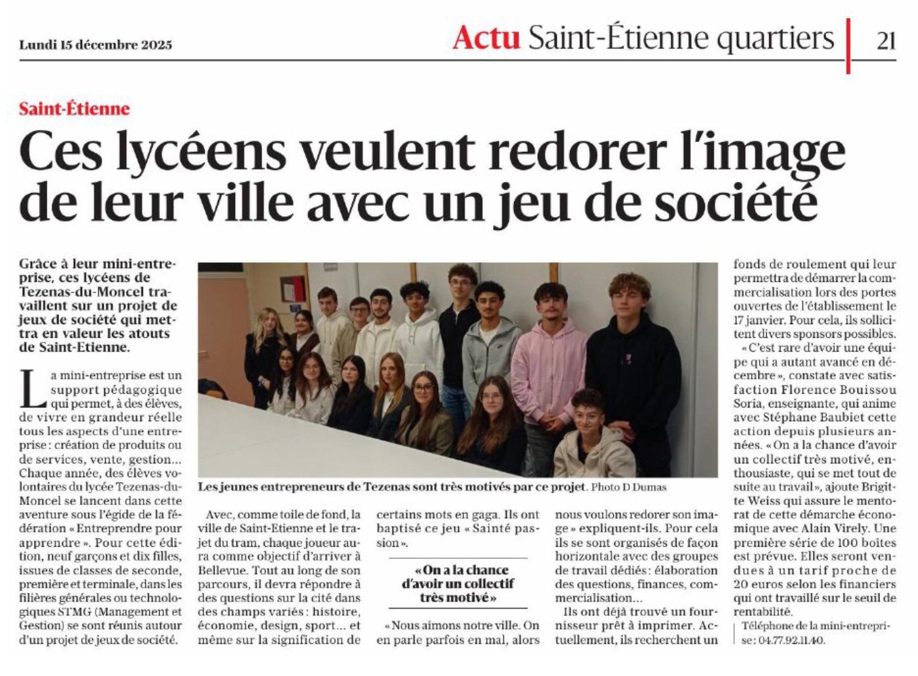« Nous sommes la mini entreprise de Tezenas du Montcel, un groupe de 18 élèves passionnés, dynamiques et créatifs, provenant de différents niveaux de la seconde à la terminale, unis par
